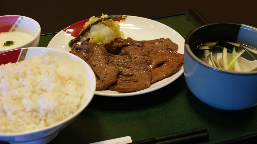 じっくり煮込んだテールスープ、麦飯にとろろがセットになった牛たん定食は当店の人気メニューです。